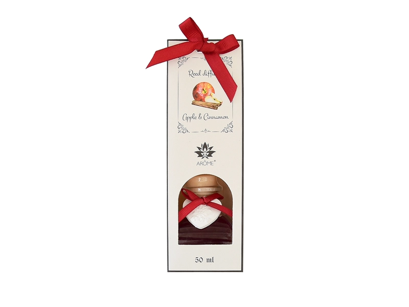 Krásna vôňa jablka a škorice, prevonia a zútulní každý domov. Aróma difuzér Apple and Cinnamon navodí nostalgickú atmosféru sviatkov jednoduchým vložením tyčinky do parfumu. Pre intenzívnejšiu vôňu stačí pridať viac tyčiniek. Darčeková krabička s červenou mašľou a krásne vône potešia nielen vás, ale aj ako darček pre vašich blízkych.
