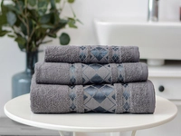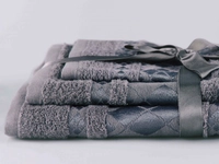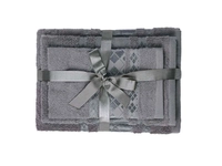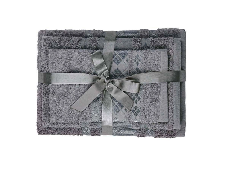 Hľadáte praktický, a pritom krásny darček? V tom prípade je darčekový set uterákov správnou voľbou. Set troch uterákov je zdobený jemnou bordúrou a ako darček previazaný saténovou stužkou je vhodný aj pre rodinu či známych. Bavlnený materiál v antracitovej farbe doladí každú kúpeľňu a pokožku dokonale osuší.