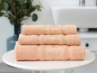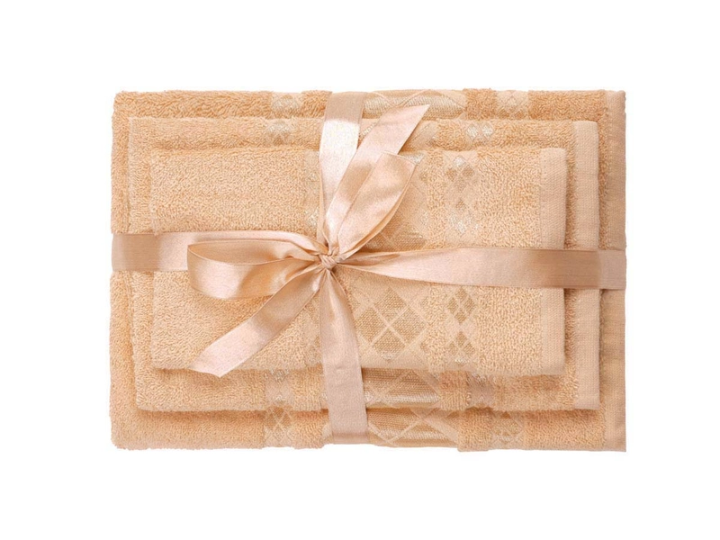 Hľadáte praktický, a pritom krásny darček? V tom prípade je darčekový set uterákov správnou voľbou. Set troch uterákov je zdobený jemnou bordúrou a ako darček previazaný saténovou stužkou je vhodný aj pre rodinu či známych. Bavlnený materiál v lososovej farbe zjemní aj vašu kúpeľňu a pokožku dokonale osuší.
