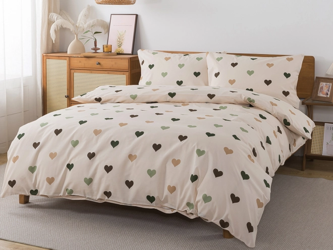 Bavlnené Renforcé obliečky SRDCOVKA - béžové