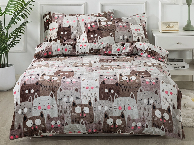 Hľadáte teplé obliečky na zimu a mačací parťáci patria medzi vašich obľúbených domácich miláčikov? Potom ste tu na správnom mieste! Mikroplyšové obliečky a vzor mačičiek v tóne sivej a hnedej farbe vaše chvíle odpočinku doslova posunú na vyššiu úroveň. Tmavý dezén krásne doladí aj téma na Halloween. Mikroplyš je hrejivý a jemný materiál tvorený vláknom s krátkymi chĺpkami, ktoré má výnimočnú schopnosť vytvárať v posteli útulno a teplo. Užite si chvíle odpočinku v mikroplyšových obliečkach a doprajte ich aj svojej rodine či blízkym ako vianočný darček, ktorý zaručene poteší.
