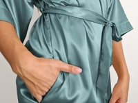 Dámsky saténový župan očarí luxusným vzhľadom v zelenej farbe a pohladí vás hodvábnou jemnosťou. Elegantný vzhľad, ľahký materiál a praktický strih trojštvrťových rukávov ponúka všetko pre dokonalú pohodu aj romantickú atmosféru. Saténové kimono jednoducho zaviažete dvojitým viazaním a môžete si vychutnať svoju obľúbenú kávu na terase. Stačí si len vybrať z pestrej ponuky farieb.