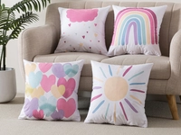 Ako nenáročne a efektne doladiť detskú izbičku? V detaile je sila! Obliečka na vankúšik 43x43 je so vzorom dúhy, mráčikov, slniečka a srdiečok s akcentom ružovej to pravé pre izbičku vašich ratolestí. Obliečka na vankúš, kvalitná potlač a výhodný set 4ks bude ideálnym doplnkom detského textilu. Príjemný a odolný materiál a pastelové farby potlače vás oslovia odolnosťou aj kvalitným spracovaním, rozmerom sedia na vankúš 40x40 vďaka tomu sú tieto dekoratívne obliečky na vankúšiky obľúbené nielen na dekoráciu, ale aj na odpočinok malých slečien.
