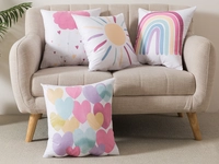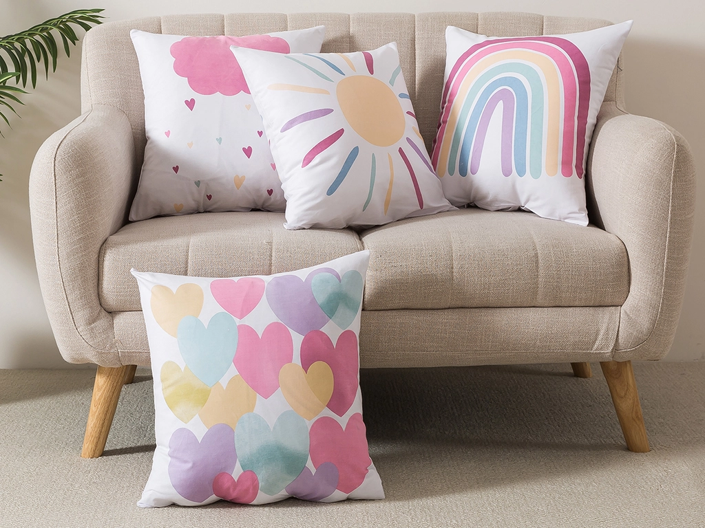 Ako nenáročne a efektne doladiť detskú izbičku? V detaile je sila! Obliečka na vankúšik 43x43 je so vzorom dúhy, mráčikov, slniečka a srdiečok s akcentom ružovej to pravé pre izbičku vašich ratolestí. Obliečka na vankúš, kvalitná potlač a výhodný set 4ks bude ideálnym doplnkom detského textilu. Príjemný a odolný materiál a pastelové farby potlače vás oslovia odolnosťou aj kvalitným spracovaním, rozmerom sedia na vankúš 40x40 vďaka tomu sú tieto dekoratívne obliečky na vankúšiky obľúbené nielen na dekoráciu, ale aj na odpočinok malých slečien.