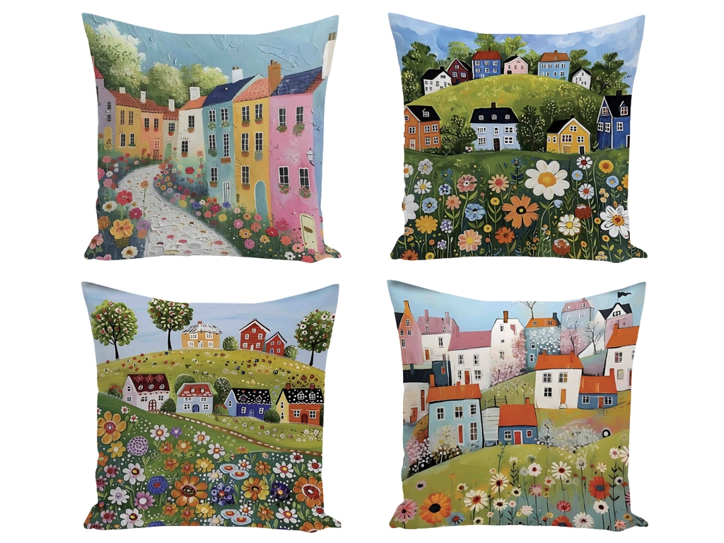 Set obliečok na vankúš DEDINA (digitálna tlač) 43x43 cm - set 4 ks