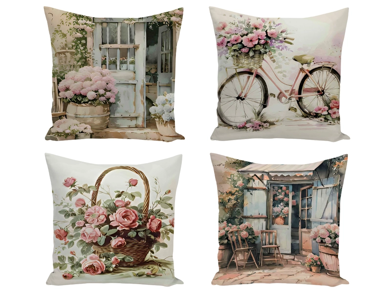 Obliečky na vankúšiky a vzor kvetov pre vidiecký interiér