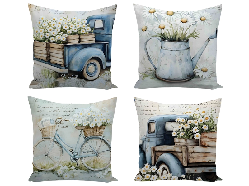 Obliečky na vankúšiky a vzor margarét pre vintage interiér
