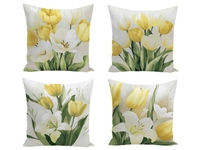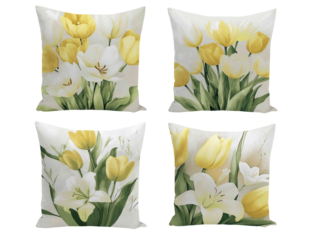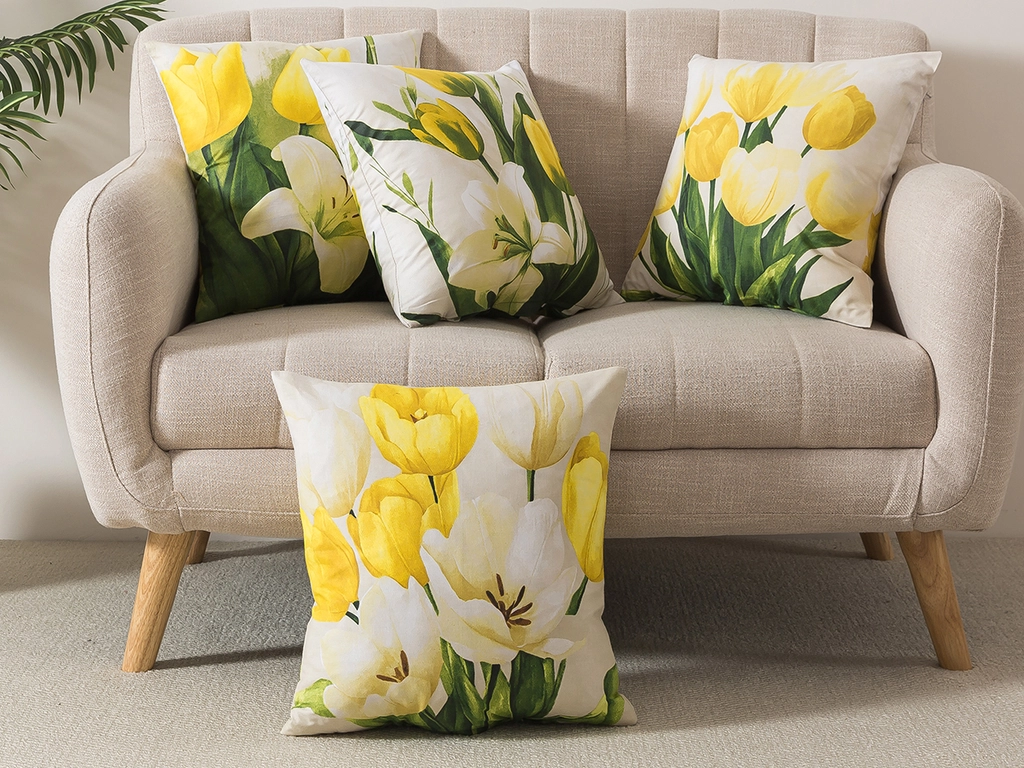 V detaile je sila! Prepnite svoj domov na jarnú sviežosť a náladu. Obliečky na vankúšiky 43x43 v bielej a žltej farbe s kvetmi tulipánov sú pre spálňu, obývačku či izbu pre hostí tou správnou voľbou. Obliečka na vankúš má príjemný a odolný materiál 100% bavlny, farby potlače vás oslovia odolnosťou aj kvalitným spracovaním. Rozmerom obliečky pasujú na vankúš 40x40 vďaka čomu sú dekoratívne obliečky na vankúšiky obľúbené aj pre denný odpočinok.