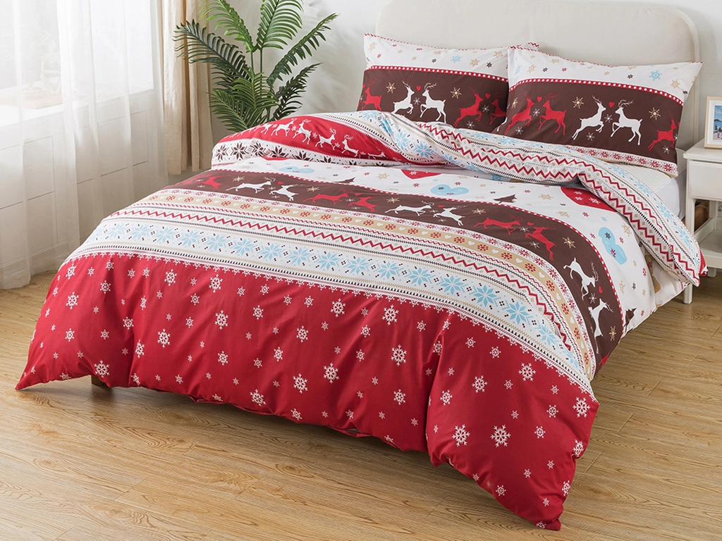 Francúzske obliečky so zimnými motívmi krásne rozžiaria spálňu sviatočnou atmosférou. Severské vzory snehových vločiek a stromčekov, zjemňuje symbol romantiky v tvare srdiečka a teplé tóny hnedej a červenej farby. Tieto luxusné obliečky majú na dotyk hladký materiál 100% bavlny Renforcé, ktorý je dobre priedušný, príjemne savý a ľahko sa udržuje. Vďaka použitiu reaktívnych farieb vydrží častejšie pranie pri vysokých teplotách bez toho, aby stratilo vašu obľúbenú farbu obliečok či tvar.