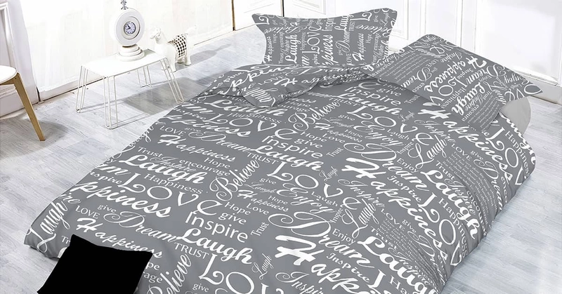 Moderné obliečky DORA plné inšpiratívnych nápisov sa ľahko stane ozdobou spální. Sivý podklad decentne kontrastuje s bielymi nápismi v angličtine, ktoré spríjemnia nejedno vstávanie. Slová ako LÁSKA, SMIECH, ŠŤASTIE a DÔVERA rozjasní každé ráno a spríjemní každú noc. Atraktívny dizajn však nie je to jediné, čím toto posteľná bielizeň dokáže zaujať. Za zmienku stojí tiež extrémne jemný a savý materiál, ktorý rýchlo schne, je odolný a dobre drží farby.