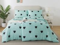 Mentolová farba je veľkým hitom posledných rokov. Ide o ideálny odtieň do trendy domácností, u ktorých chcete docieliť príjemného a útulného dojmu. Mikrosaténové obliečky LOVE sa tak perfektne hodia do dievčenských izieb. Obojstranný motív srdiečok len umocňuje sviežu a optimistickú atmosféru. Na dotyk jemný materiál pohladí, zľahka objíme a pripraví vás k ničím nerušenému spánku. Nekrčivý materiál z umelého vlákna sa nemusí žehliť a odolnosť farieb voči častému praniu je samozrejmosťou.