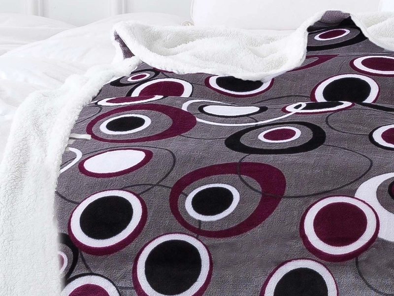 Deka z mikroplyšu s baránkom 200x220 zahreje aj pohladí. Harmonické vzory kruhov v kombinácii odtieňov slivkovej, bielej, čiernej a sivej farby budú snovým kúskom pre každý interiér. Užijete si ju pri odpočinku s šálkou horúceho čaju, leňošenie u televíznej obrazovky alebo napríklad ako efektný prehoz na manželskú posteľ. Je vhodným darčekom pre rodinu, priateľov či večných uzimencov. Schválne. Viete si predstaviť ten pocit, keď sa za dlhých zimných večerov zaboria do hrejivej deky?