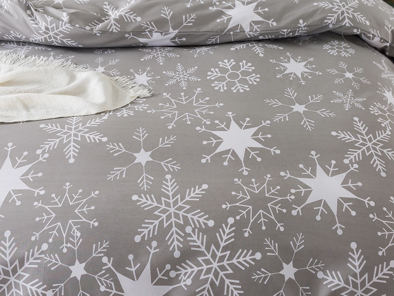 Flanelové obliečky JON roznežnia každú spálňu. Krása sviežich snehových vločiek krásne vyniká na sivom podklade a je tak vhodnou ozdobou nielen na bežné dni, no aj na pohodové trávenie sviatkov. Kvalitná 100 % bavlna česaná do flanelu zaručí jemný hrejivý efekt a vzdušnosť materiálu. Obliečky so zapínaním na gombíky a rozmerom 140x200 a 70x90 cm skvele padnú na našu ponuku vankúšov a prikrývok v sekcii lôžkoviny.