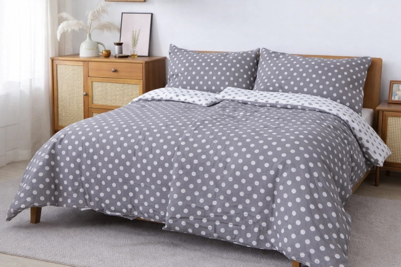 Obliečky z bavlneného krepu pre milovníkov sivej a roztomilých bodiek