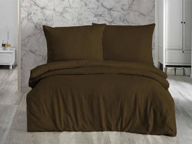 Luxusné saténové obliečky s jemnými prúžkami vás nadchnú svojou nadčasovou eleganciou a osobitým pásikavým dizajnom. Pokiaľ si potrpíte na tradičné motívy a hnedé odtiene, ktoré nikdy nevyjdú z módy, potom bude francúzsky rozmer bavlnený satén zdobiť vašu posteľ vskutku dokonale. Na dotyk jemný povrch dobre odoláva oderom, nechladí a je schopný pohlcovať vlhkosť až do 20 % svojej hmotnosti. Pre svoje výnimočné vlastnosti tešia čím ďalej väčšej obľube a plne uspokoja i náročných zákazníkov.