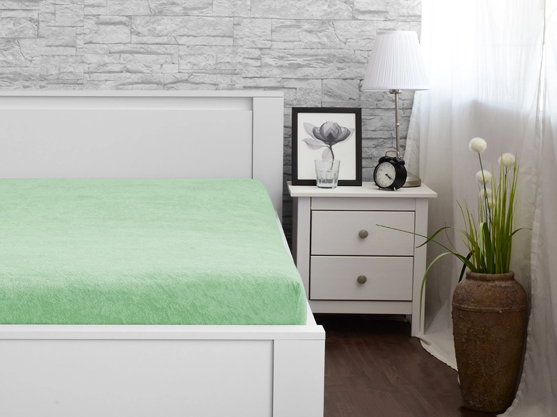 K pekným obliečkam bezpochyby patria vkusne zladené froté plachty. Tvorí ich hrejivá, mäkká a na dotyk príjemná slučková tkanina, ktorá sa skladá z 80% bavlny a 20% polyesteru. Froté plachta a zelená farba spoločne s posteľnými obliečkami aj s obliečkami na vankúšiky podtrhne prírodný štýl interiéru. Obľúbite si ich pre nenáročnú údržbu bez žehlenia a ľahkú manipuláciu. Spodná časť plachty je zakončená všitou gumou, vďaka ktorej sa ľahko upevní na matrac a dobre na ňom drží.