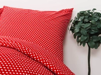Roztomilé a zároveň decentné sú bavlnené obliečky MARKÉTA. Červený podklad zdobia hravé bodky, ktoré navodia príjemnú zmenu v každej spálni či detskej izbičke. Jemná priadza zo 100% bavlny Renforcé vyniká mimoriadnou odolnosťou a stálosťou farieb aj pri častom praní. Hladký materiál je dobre priedušný a má všetky vlastnosti na navodenie dobrého spánku.