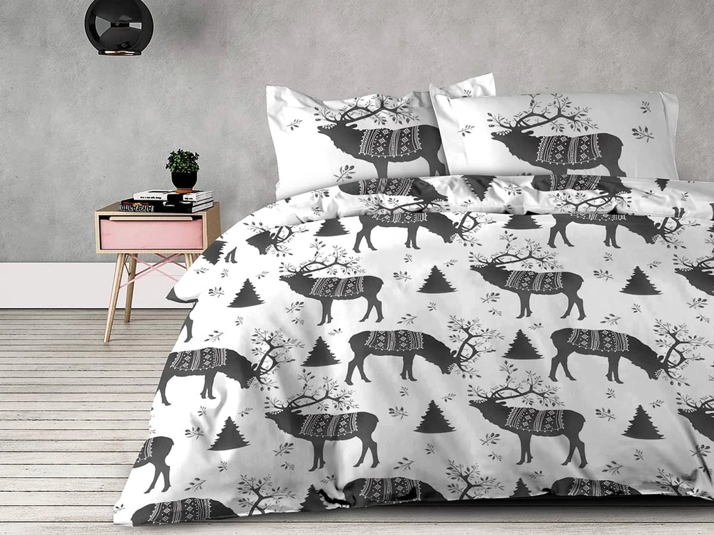 Majestátny motív jeleňov prinášajú bavlnené obliečky DORIA. Biela na podklade dá krásne vyniknúť detailne spracovaného vzoru v tmavom odtieni. Táto textilná súprava sa postará o príjemnú zmenu aj vo vašej spálni a oceníte tiež jemný no zároveň odolný materiál a stálosť farieb.