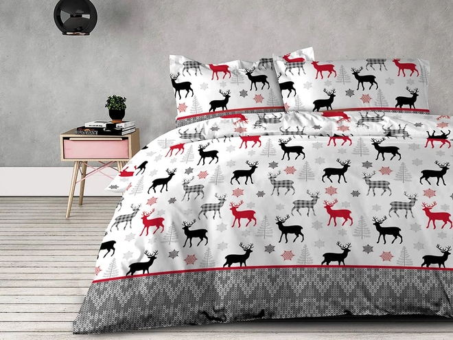 Šarmantným menom AMANDA sa pýšia tieto bavlnené obliečky, ktoré vnesú sviežosť aj do vašej spálne. Biely podklad zdobia decentné sivé odtiene v efektnom kontraste červených vzorov. Ladné stvárnenie jeleňov bude to pravé pre sviatočné obdobie, ako aj bežné zimné dni. Pozadu nezostane ani príjemná 100% bavlna Renforcé, ktorá je odolná a stálofarebná.