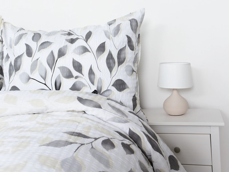 Krepové obliečky IVANKA so sviežím vzorom lístkov a kvetov v sivej a decentnej béžovej farbe pristanú jak svetlej, tak aj tmavo zariadenej spálni. Na svoje si prídu milovníci jari a pohodlného spánku. Vďaka jemnému spracovaniu 100% bavlny s krepovou úpravou sú obliečky dobre priedušné a hebké na dotyk.