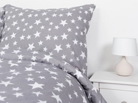 Sivé obliečky z krepu a záplava hviezd pre sladký spánok v bavlne