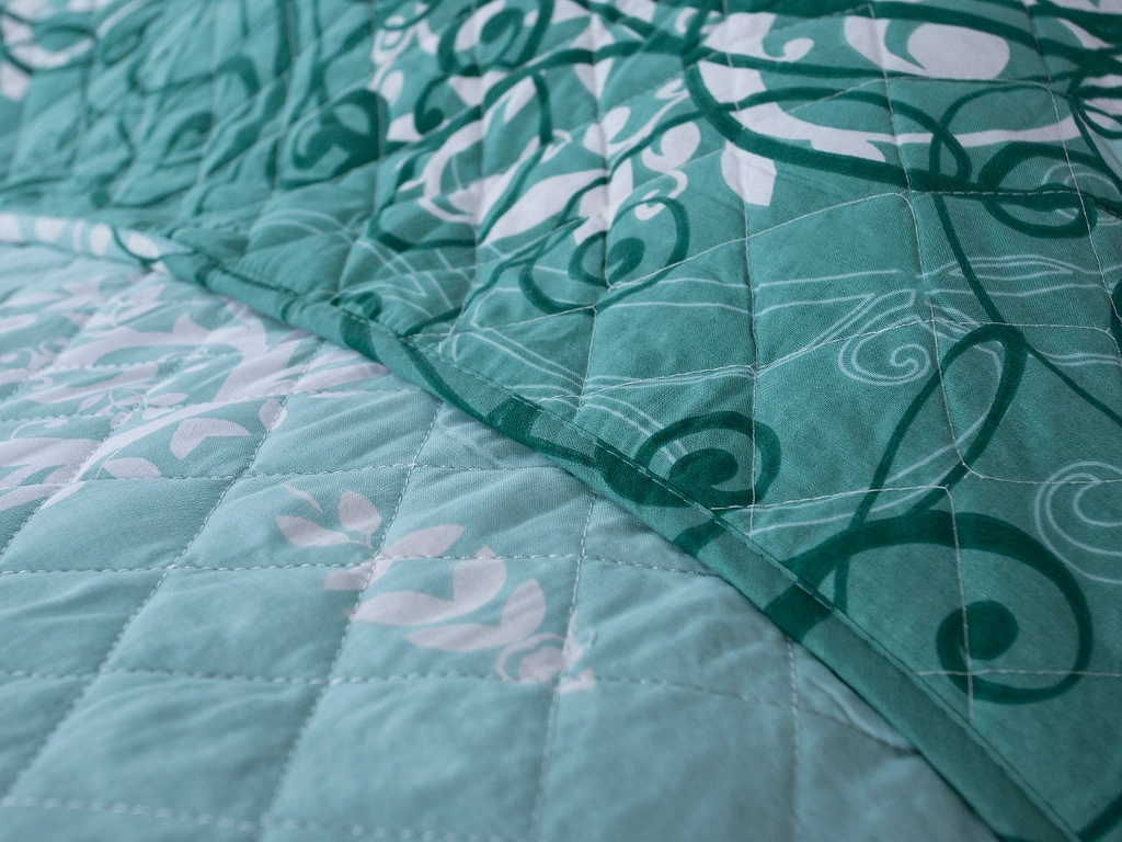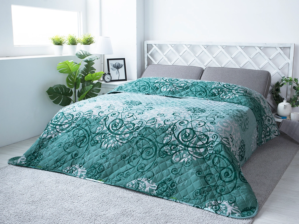 Nestíhate ráno ustlať? Potom sa vám prikrývka na posteľ AMÉLIA bude zaručene hodiť. Vo dne dokonale chráni lôžkoviny a v noci vás môže krásne zahriať, ako ďalšia prikrývka. Nadchne milovníkov aj milovníčky tyrkysových, až zelených odtieňov, ktoré stvárňujú ornamentálne vzory sústredené do kruhov a to z oboch strán prehozu. Tento jemný dizajn vtiskne eleganciu do každého interiéru. Povrch prikrývky je vyrobený zo 100% bavlny a vyplnený dutým vláknom s praktickým prešívaním do kosoštvorcov, ktoré zaistia stabilitu aj po vypraní. Prehoz doplnený o obliečky na vankúše a krásne posteľné obliečky rozhodne posunie vašu spálňu na vyššiu úroveň.