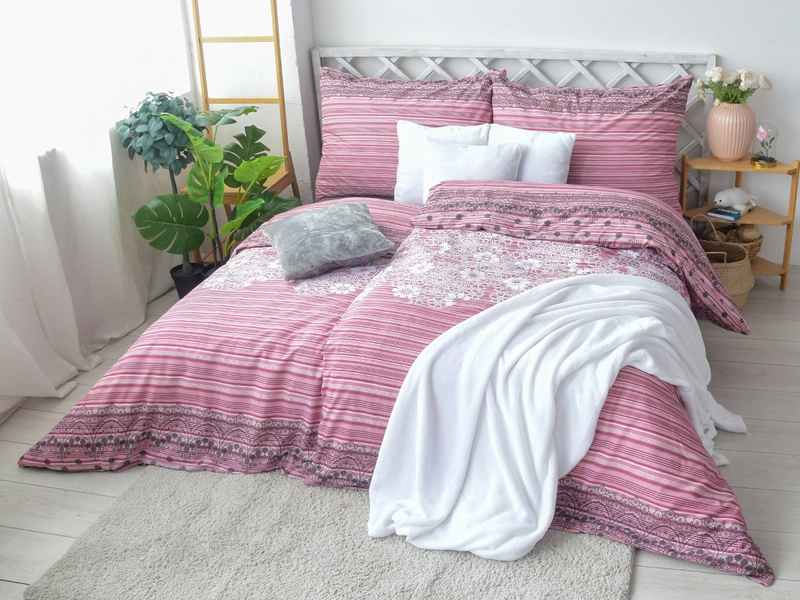 Bavlnené obliečky s potlačou kvetov PAULINA vnesú do každej spálni tú správnu atmosféru. Na svoje si prídu milovníci ružových - staroružových odtieňov a pohodlného spánku. Každá obliečka na vankúš je unikátna a nesie na seba inú časť vzoru smerovanú vodorovne. Vďaka dobrým vlastnostiam Renforcé 100% bavlny sú obliečky príjemne priedušné a hebké na dotyk s vynikajúcou absorpciou vlhkosti. Francúzske obliečky sú vhodné pre páry, ktoré sa radi zababušia pod veľký paplón.