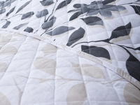 Harmonický motív lístkov v kombinácii béžových a sivých farieb na bielom základe rozjasní každú spálňu a novodí v nej pocit čistoty. Využitie nájde tiež ako ďalšia prikrývka, ktorá vás v noci zahreje. Jemný povrch zo 100% bavlny je vyplnený s dutým vláknom a pravidelné prešitie udrží tvar aj po vypraní.