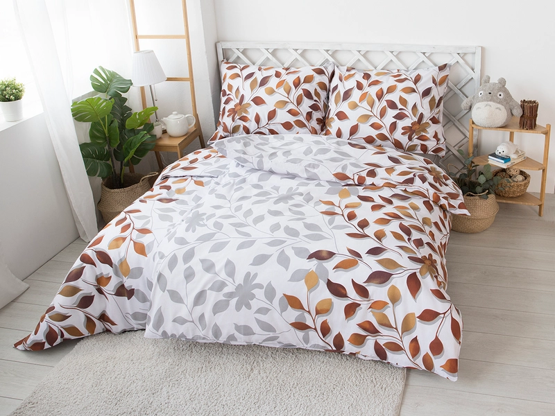 Predĺžené obliečky a florálny motív IVANKA so vzormi kvetov a listov ocenia nielen milovníci jari, ale aj tí, ktorí si potrpia na pohodlný spánok v bavlne. Tento dizajn v odtieni hnedej a béžovej pristane najmä svetlým spálňam. Vďaka materiálu zo 100% bavlny sú obliečky dobre priedušné a hebké na omak. Predĺžené obliečky 140x220 doplňte o ďalší bytový textil a zostavte si svoj set. K posteľnej súprave kombinujte mikroplyšové deky a obliečky na vankúše.