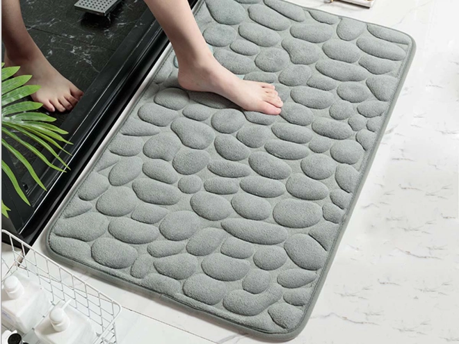 Kúpeľňová predložka a vzor kamienkov v zelenej farbe je to pravé orechové pre trendy interiér a vyladený kúpeľňový textil. Doprajte si maximálne pohodlie aj príjemné teplo a savosť, ktoré vám ponúka táto kúpeľňová predložka s pamäťovou penou. Pošmyknutia sa báť nemusíte. Kúpeľňová predložka zaistí s protišmykovou vrstvou vašu bezpečnosť po kúpeli. Navyše vďaka priepustnosti tepla je táto predložka do kúpeľne vhodná aj na podlahové kúrenie.