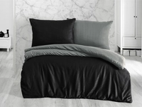 Predĺžené saténové obliečky PRUHY DUO - čierne/tmavo sivé
