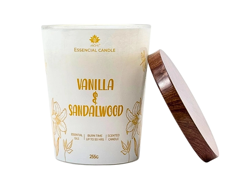 Urobte si doma útulný a hrejivý kútik s esenciálnou sviečkou AROME s objemom 255 g. Tvorí ju skladba esenciálnych olejov, táto sviečka je naplnená v štýlovej sklenenej nádobe s kovovým viečkom, ktoré zachováva vôňu aj kvalitu vosku.
